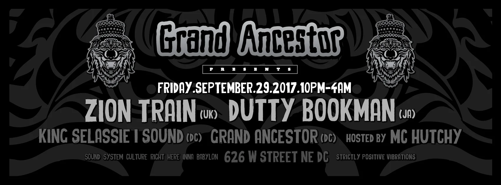 The Presidential Sound strikes again, Friday, September 29th, in fine style with ambassadors from the UK and Jamiaca as we welcome Zion Train to D.C. for the first time along side Dutty Bookman and King Selassie I Sound. Usual suspects, Grand Ancestor and MC Hutchy inna di dance to make you jump and prance. All tribes welcome.