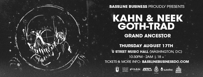 Join us to welcome Kahn, Neek, and Goth-Trad Music official at U Street Music Hall Thursday 8/17!